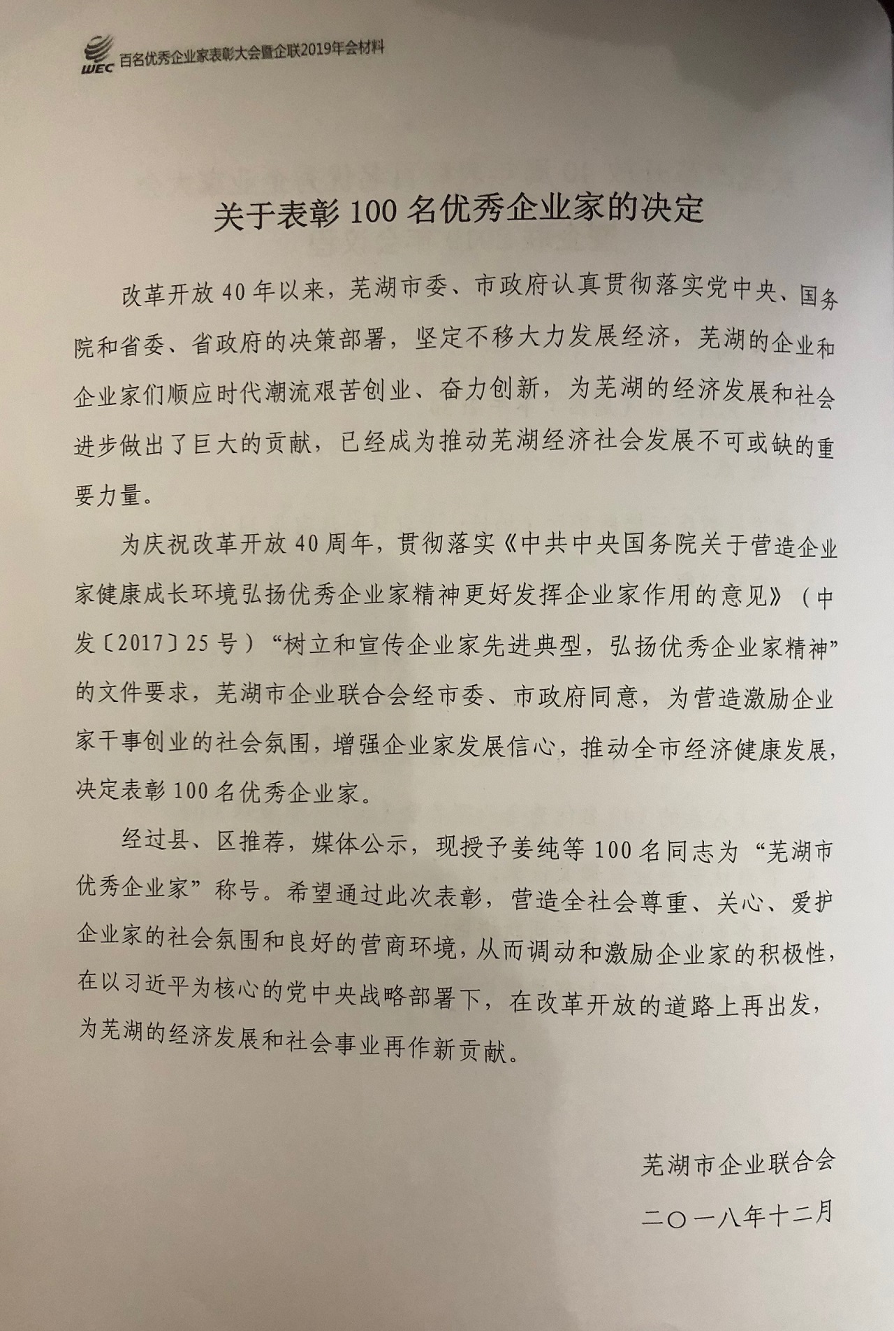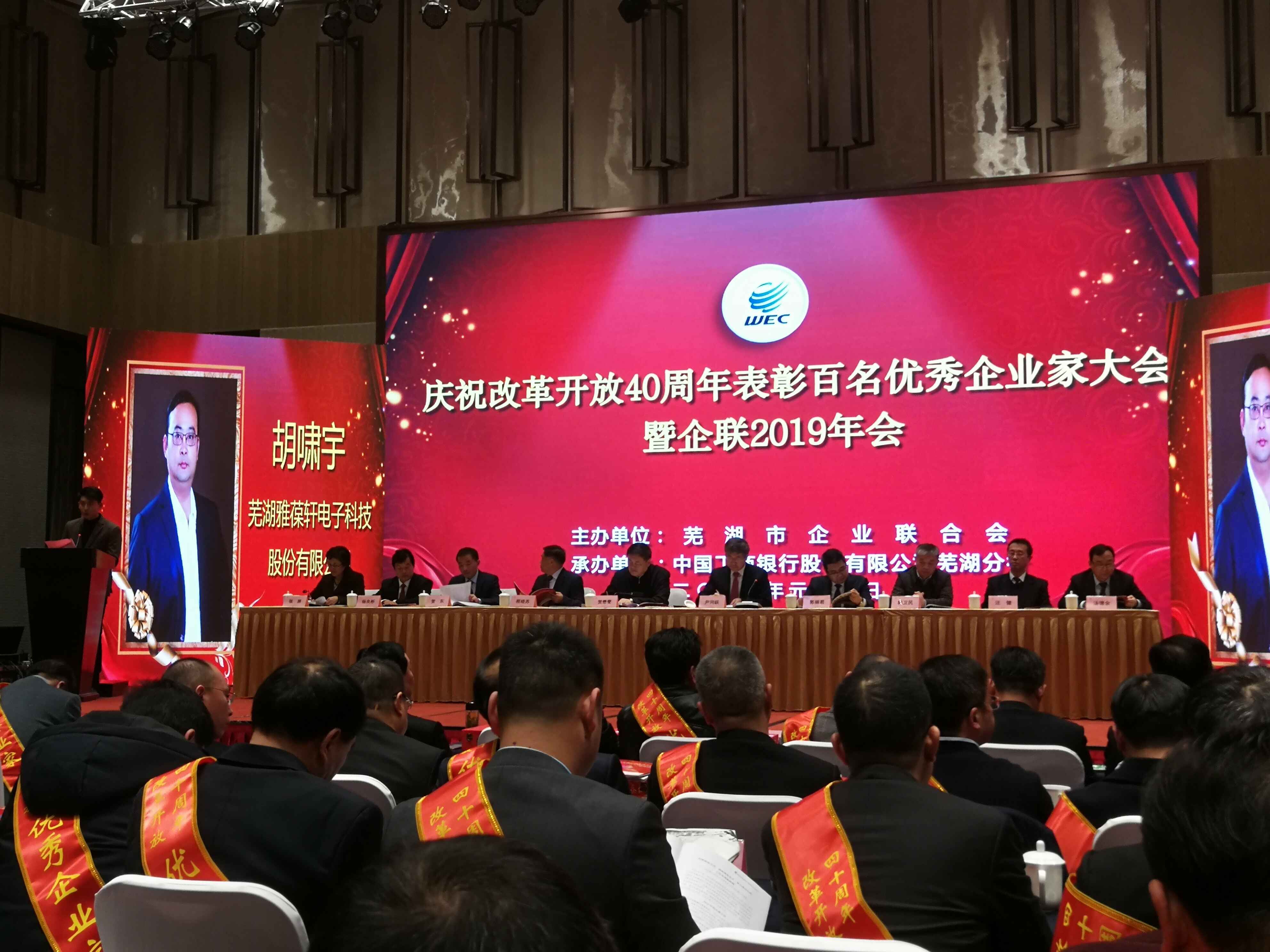 會(huì)上對(duì)蕪湖市改革開放和經(jīng)濟(jì)社會(huì)發(fā)展做出突出貢獻(xiàn)的優(yōu)秀企業(yè)家進(jìn)行表彰,雅葆軒董事長(zhǎng)胡嘯宇先生榮獲“改革開放40周年優(yōu)秀企業(yè)家”稱號(hào)。