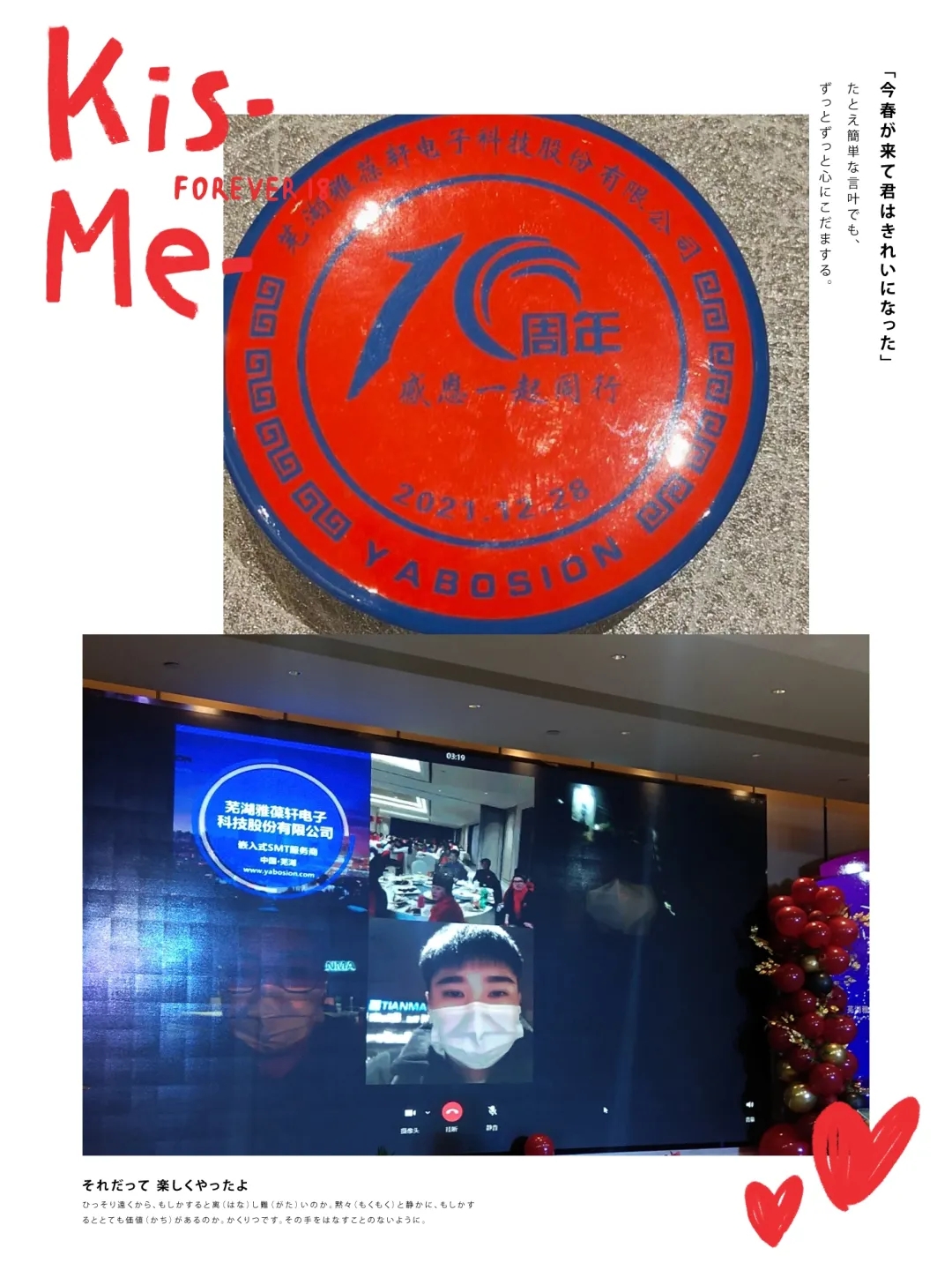 十年披荊斬棘,十年砥礪前行。我們堅(jiān)信在董事長(zhǎng)、總經(jīng)理的正確領(lǐng)導(dǎo)下,全體同事的共同奮斗下,蕪湖雅葆軒電子的下一個(gè)十年一定會(huì)更美好!讓我們跟隨雅葆軒在全新的2022年——揚(yáng)帆搏浪正當(dāng)時(shí),昂首邁進(jìn)新征程!雅葆軒人堅(jiān)持夢(mèng)想,不忘初心,向著下一個(gè)十年再出發(fā)!