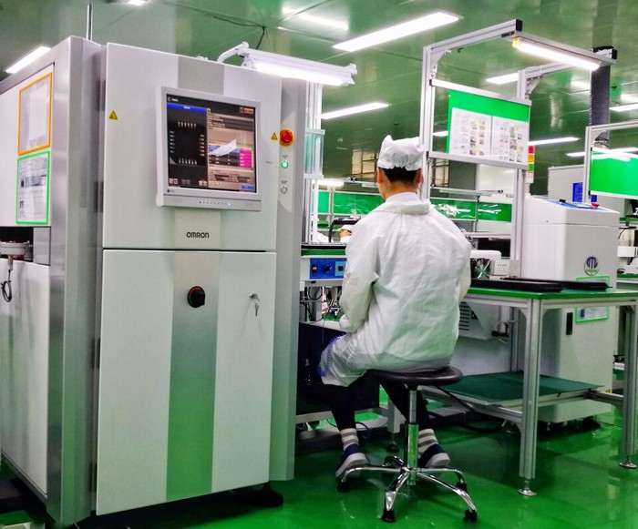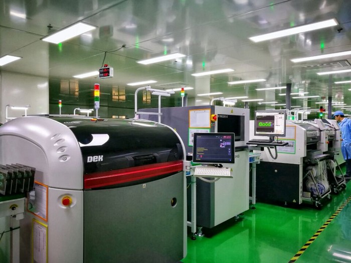 蕪湖雅葆軒電子科技股份有限公司新建SMT3號生產(chǎn)車間于2017年4月正式投入使用,該車間SMT生產(chǎn)線設(shè)備采用英國DEK全自動(dòng)印刷機(jī)、韓國高永(KY)SPI、YS12F/松下NPM高速貼片機(jī)、德國ersa(無鉛氮?dú)猓┗亓骱笝C(jī)、歐姆龍AOI(全自動(dòng)視覺外觀檢查機(jī))、日本島津X-ray(BGA類元件透視檢測分析)、三次元測量機(jī) 、ED-XRF(有害物質(zhì)測試儀)等先進(jìn)的生產(chǎn)、檢測設(shè)備,車間內(nèi)的潔凈度達(dá)萬級;日生產(chǎn)能力達(dá)500萬點(diǎn)。